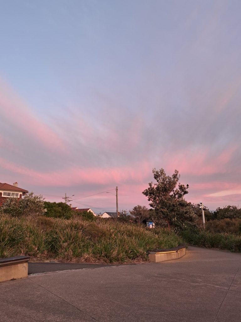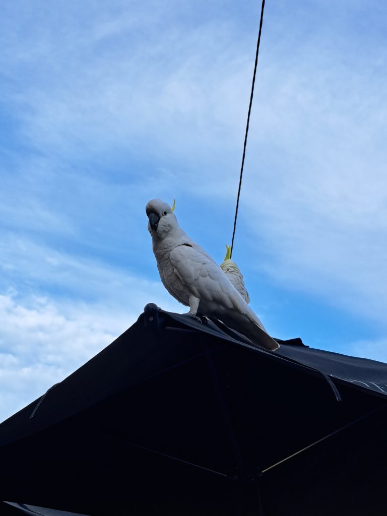Het is gelukt, ik werd om 04:00u wakker! Veel te vroeg. Gelukkig reden er al bussen naar Town Hall station, waar we hadden afgesproken om samen de bus naar Macquarie Lighthouse te nemen. Al was het vroeg, wel gezellig gekletst in de bus. Zonsopkomst gekeken dus, was nog wel beetje koud zo vroeg, maar wel heel mooi uitzicht! Veel te veel foto’s gemaakt natuurlijk. Dolfijnen gespot! Langs de kust gelopen en naar de andere kant gelopen waar een baaitje was. Daar samen ontbijt gehaald rond een uur of acht. Er waren een heleboel cockatoos/kaketoes in de regio, echt heel veel gezien, op een plekje zaten er zelfs tien zo’n beetje naast elkaar. Nog nooit die vogels gezien (in het wild), maar hier zijn ze blijkbaar normaal. Het zijn echte schreeuwbeesten, wat kunnen ze krijsen hahaha. Deed me denken aan de film Rio. Ook een paar groene parkieten(?) gezien. Cool om het verschil in diersoorten te zien! Om 10u ’s ochtends al 10 000 stappen gehaald, nieuw record denk ik.