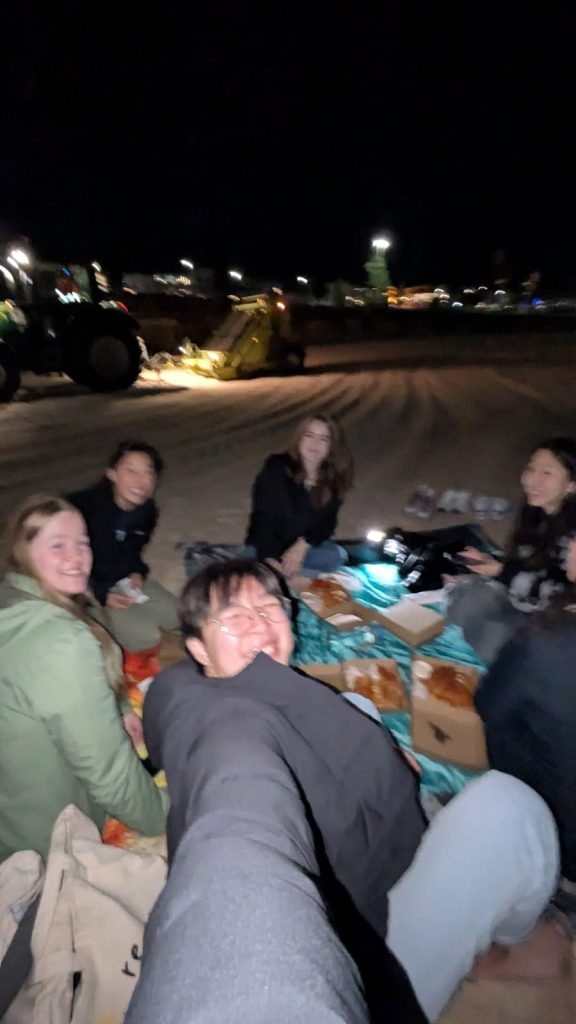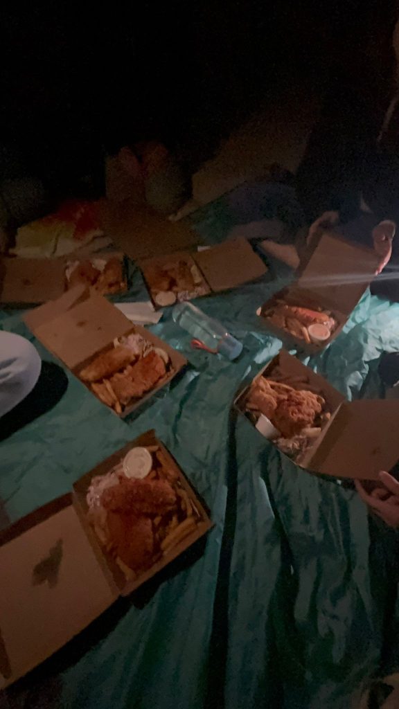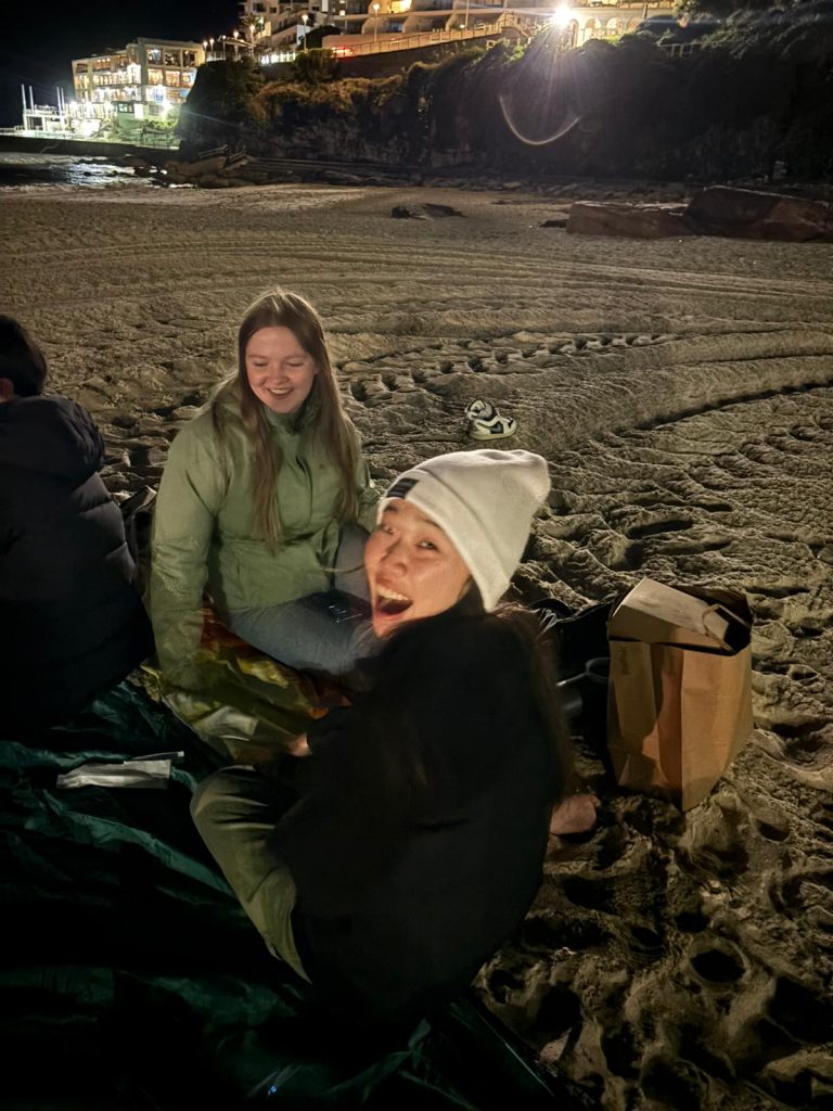 ’s Avonds herenigd en bij Bondi Beach ergens fish n chips gehaald en meegenomen naar t strand. In het donker met wat telefoonzaklampen op een picknickkleedje gezeten en lekker gegeten. Af en toe kwam er een tractor voorbij die het zand plat aan het vegen was, hij keek ons aan met een blik van ‘wat doen jullie op t strand in t donker’. Natuurlijk ook even gaan pootje baden en de zee bleek warmer dan het zand. Oh en als je in het zand rende, hoorde je het knarsen, grappig geluid. Op een gegeven moment hoorde ik de rest zeggen dat er zoveel sterren te zien waren, maar toen ik omhoog keek, vond ik het er eigenlijk vrij weinig. Verschil met grote (verlichte) Amerikaanse steden en Nederlandse steden/dorpen denk ik.