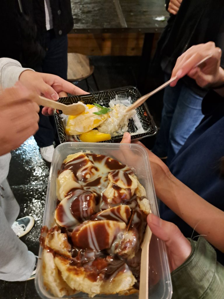 22 aug: ’s Middags had ik lab, vandaag prima, redelijk rustig experiment. Thuis wat gewerkt aan unidingen en de was gedaan enzo. Met de lobotomies gaan eten bij Malay Malay (Maleisisch eten), was lekker. Beetje druk restaurant, dus kon niet alle gesprekken volgen door het geluid. Ergens anders gingen we nog n Thais dessert eten, ik had roti banana chocolate. We gingen extra langzaam eten in de hoop dat de regen minder zou worden, maar uiteindelijk gaven we op en toch maar weer kletsnat naar huis. Thuis gebeld met mn ouders, ze waren aan het kijken naar wanneer t uit zou komen om me te bezoeken.