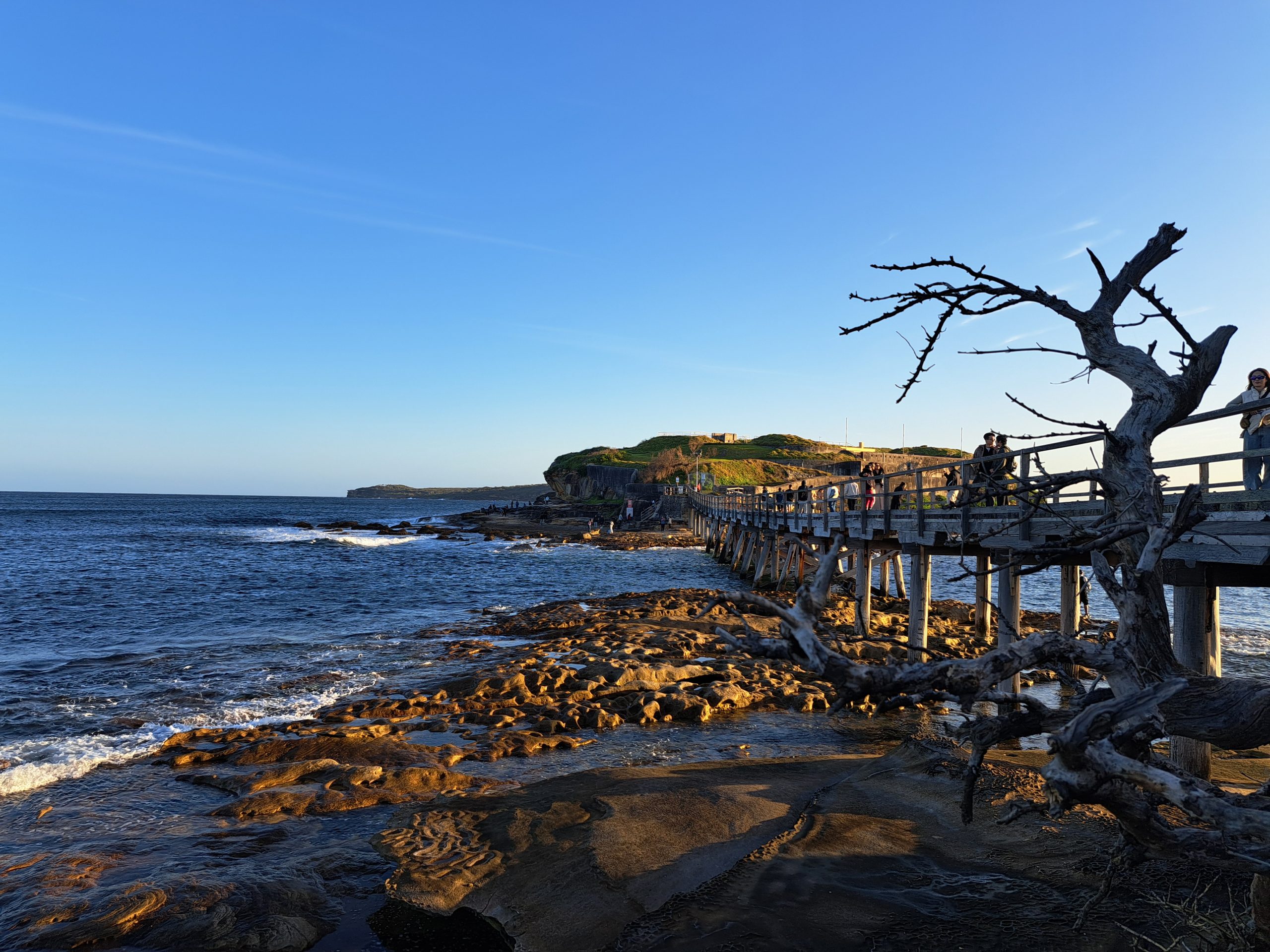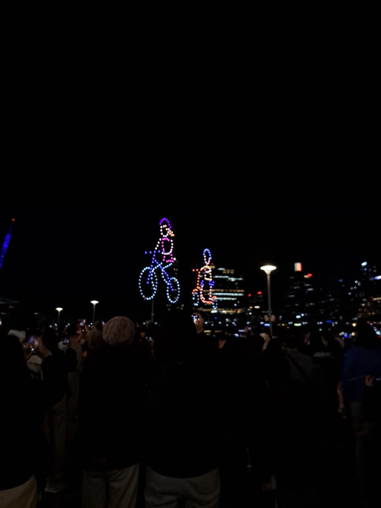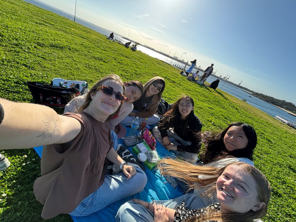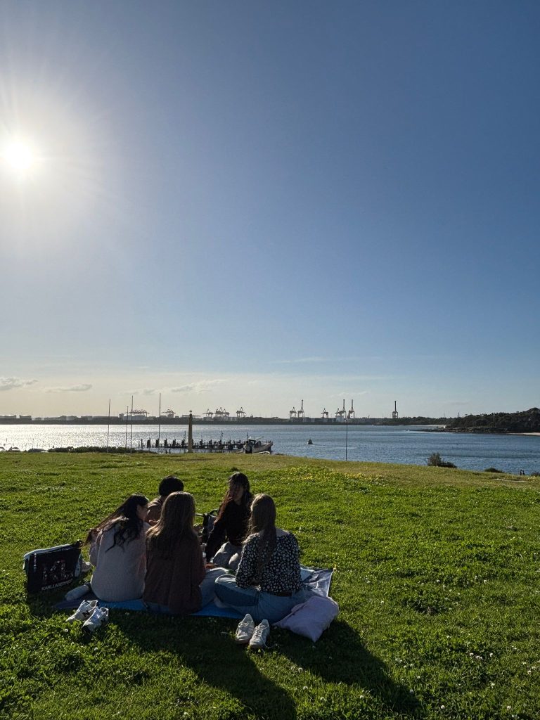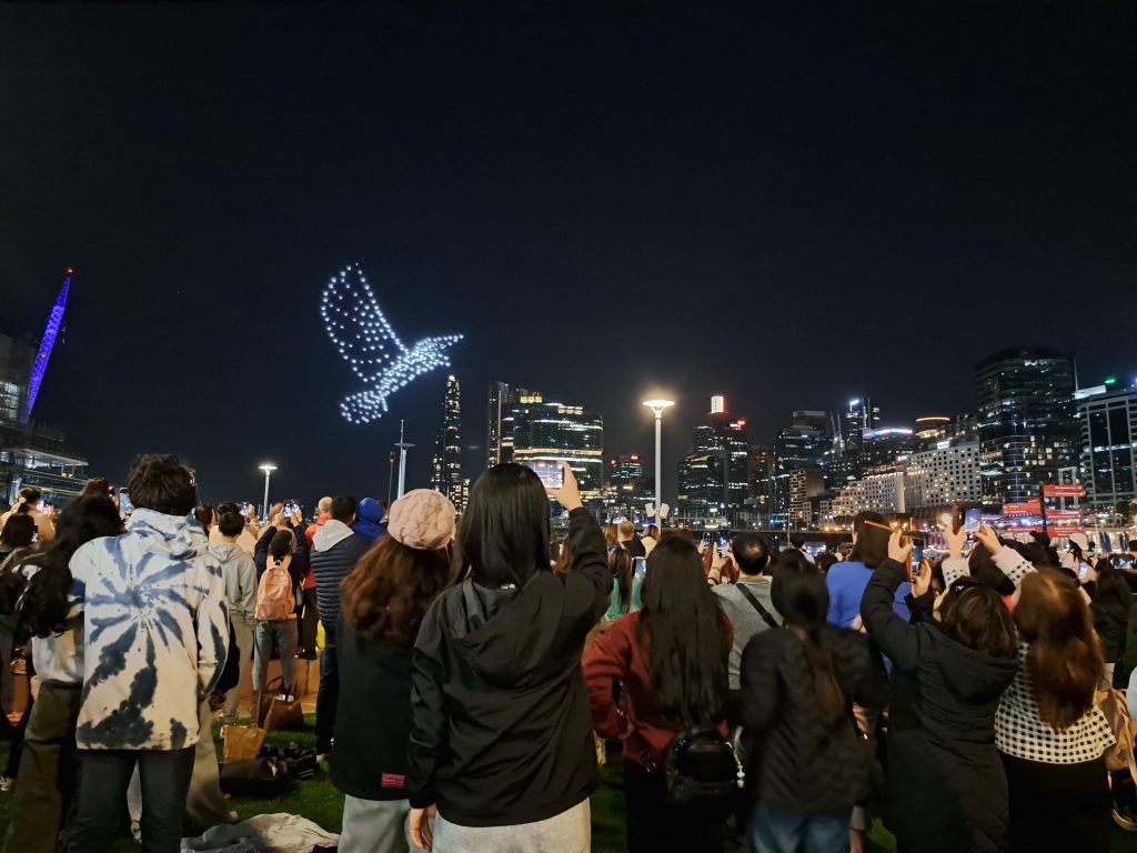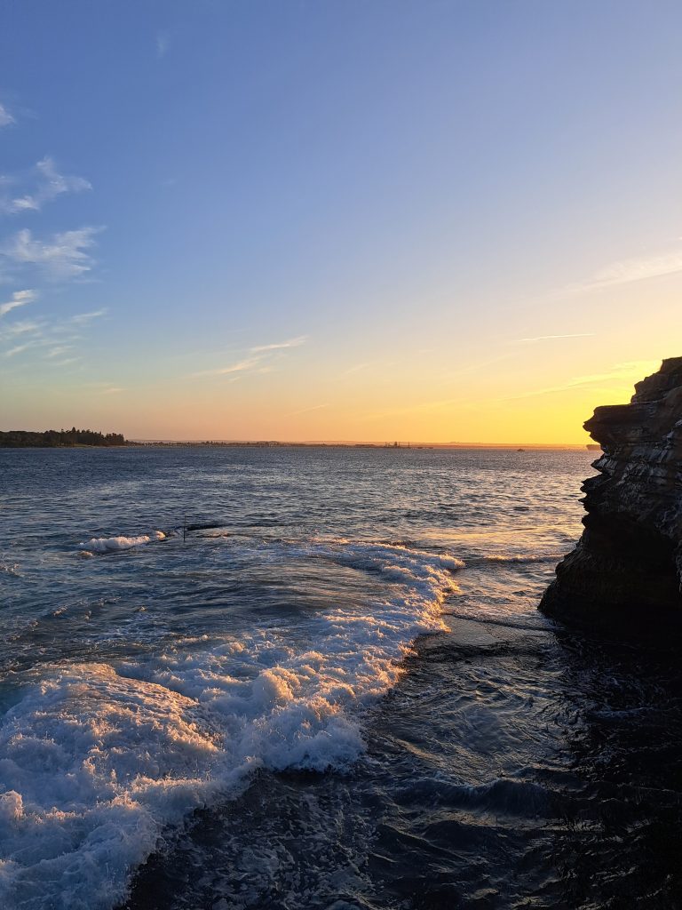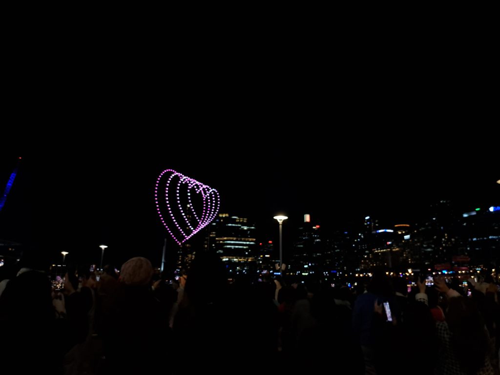 Vandaag met Cynthia, Sunny, Angela, Cailene en Cindy naar La Perouse gegaan (wat meer in het zuiden van Sydney). Daar met zijn allen gepicknicked met wat snacks en spelletjes. Ook rondgelopen over de pier en kustrotsen. Flinke golven af en toe! Ik vind het er altijd zo mooi uitzien wanneer golven op de rotsen slaan met veel schuim. Zonsondergang gekeken. Daarna weer met de bus terug naar de stad. Cynthia, Cailene en ik haalden ergens Thais eten (inmiddels zijn mijn stokjesskills verbeterd haha) en zijn toen naar Darling Harbour gegaan, waar om half negen ’s avonds een drone lichtshow te zien was! Wel maar 10 minuten, maar toch leuk om te zien. Dat vonden een heleboel andere mensen ook, want t was een drukke boel daar. Na de show werd het gelukkig een stuk rustiger en luisterden we naar een straatmuzikant die heel goed gitaar kon spelen! Op de terugweg naar huis nog even snel de Coles binnengelopen voor wat boodschappen.