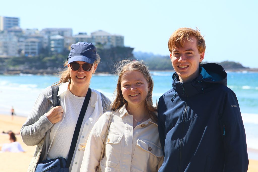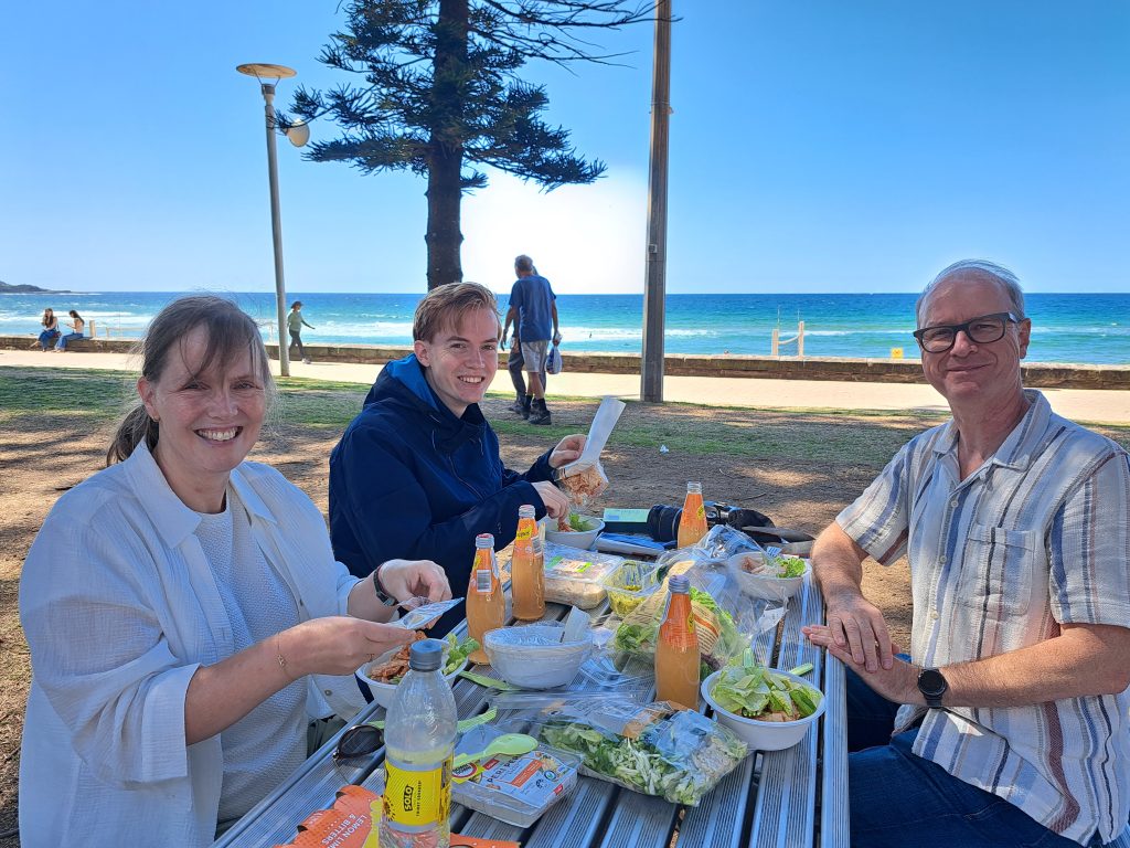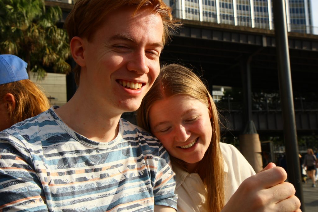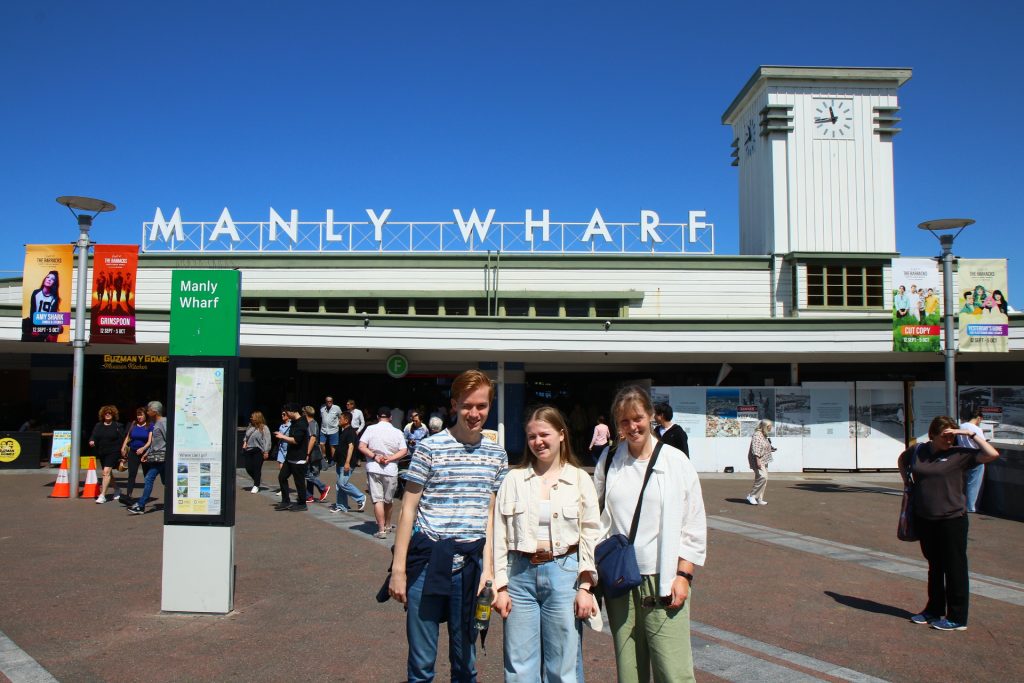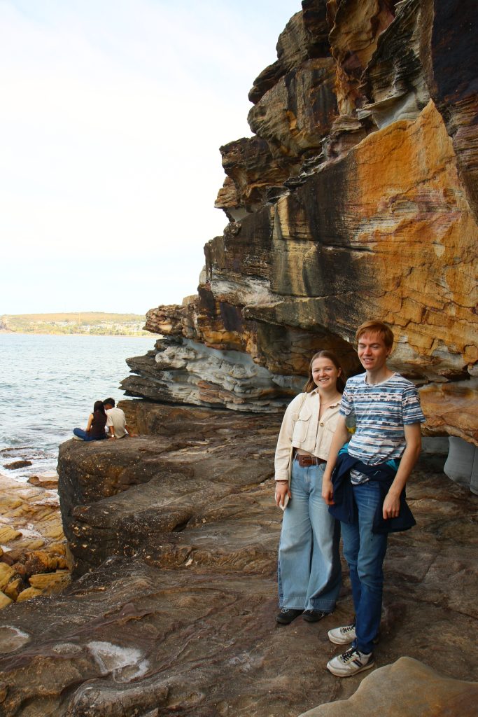 Om 10u ’s ochtends waren de poppetjes bij mij, met zn allen naar Circular Quay (uitspraak als t Engelse ‘key’) gebust. Mama is niet zo gewend aan bussen merkte ik haha. Met de ferry naar Manly gegaan. Die ferry vaart best een mooie route, tussen het opera house en de harbour bridge in, oftewel, papa ging los met foto’s maken (wel terecht hoor). Mama werd een beetje draaierig van de extra snelle ferry, dus die bleef maar even zitten. Eenmaal daar wat lunchspul gehaald bij de Coles en bij Manly Beach ergens een picknicktafeltje in de schaduw kunnen scoren. Het was nog best een beetje frisjes in de schaduw met wat wind. Verderop (1 km verder weg ofzo) was er een dikke rookwolk te zien, brand?? Na de lunch wilde ik weer verder lopen over het strand, maar ze moesten toen nog even tickets boeken voor wat activiteiten in hun reis, en dat kon blijkbaar niet op de boot… Duurde nogal lang. Maar oke, na een goed halfuur klooien met tickets mochten we toch weer verder lopen, hè hè. Nou, toen dus langs de zee gelopen en naar een mooi rotsplekje gegaan waar ik de vorige keer flinke golven omhoog had zien ketsen, maar uhh ja het water was nogal stil, dus pech. Stukje de hoek om gelopen waar een soort tunneltje door de rotsen was en daarachter was het ook heel mooi! Daarna weer teruggelopen langs de zee en yo-chi gehaald, nommmm. De rest vond het ook lekker, al had papa niet de echte ‘yo-chi experience’, want hij haalde gewoon een hoorntje. Onderweg zagen we wat Australische planten en dieren zoals banksia’s en cockatoos. Ik vond het best grappig om hen er helemaal enthousiast over te zien, ik heb er inmiddels al zoveel gezien haha.
