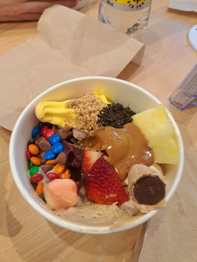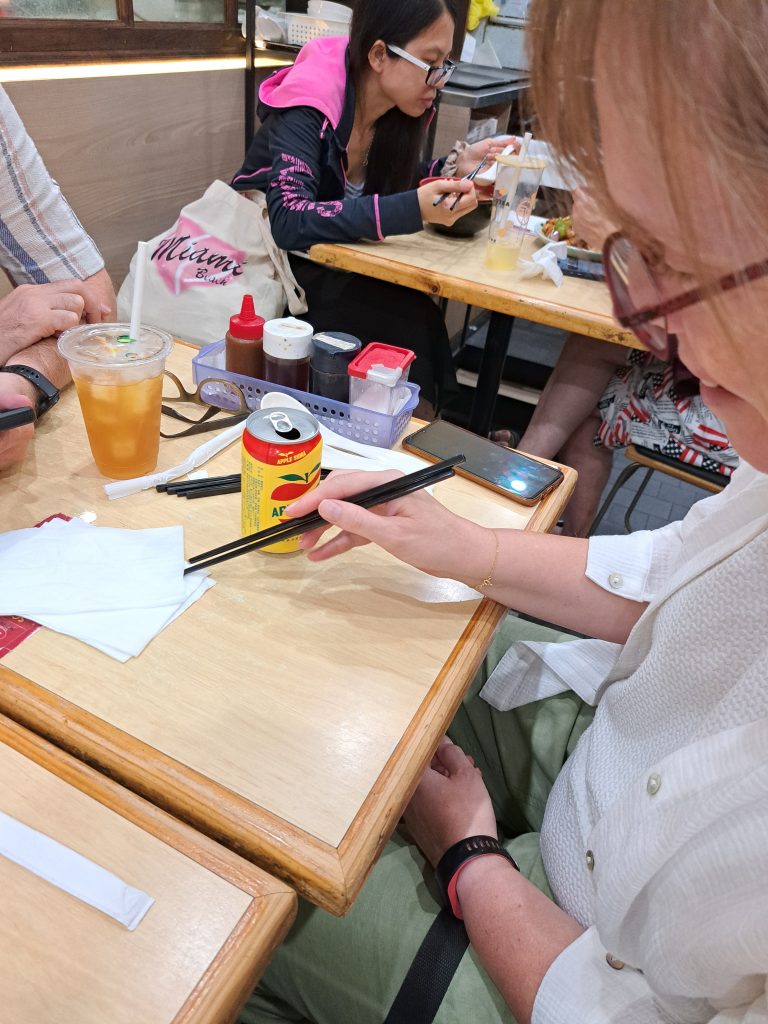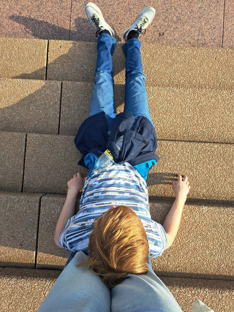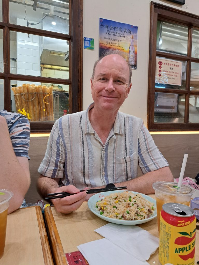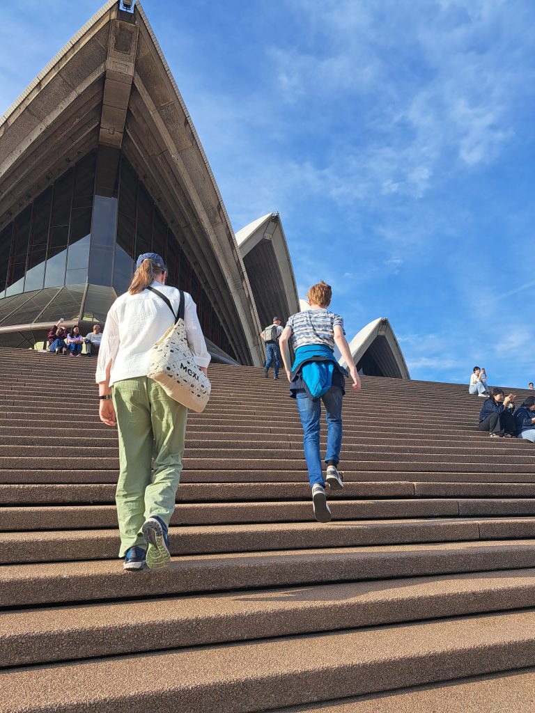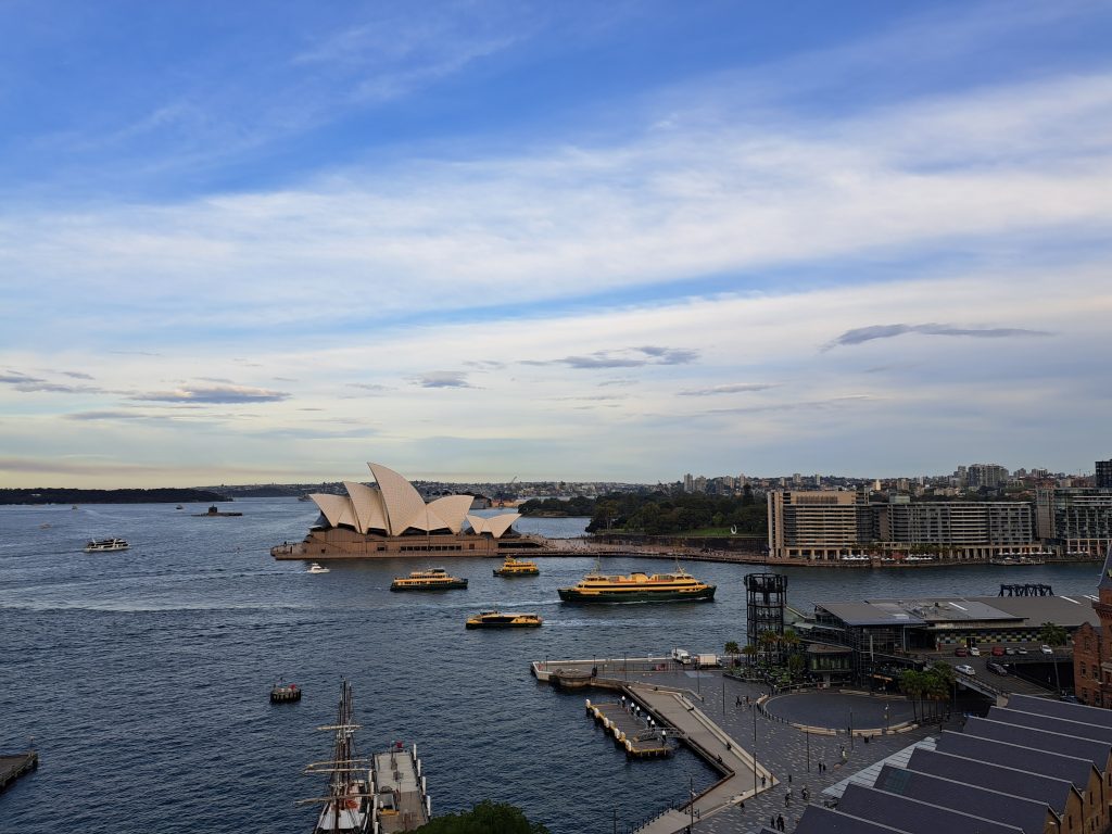 Na de ferry terug keken we een beetje rond bij het opera house, nog nooit echt van dichtbij naar toe geweest gek genoeg. Natuurlijk weer wat bruidskoppels fotoshoots zien maken, echt dé plek hier blijkbaar. Trappen weer af en naar de andere kant van de baai gelopen waar we weer trappen op gingen voor de Harbour Bridge. Mijn plan was hier de zonsondergang te bekijken, maar het weer dacht er anders over, flink flink bewolkt helaas. Wel alsnog mooi uitzicht verder. Oh, en tegenover het opera house lag echt zo’n kapot groot cruiseship, inclusief glijbaan en workoutspeakers en -scherm die vanuit ons nog te horen/zien waren, die hebben geld over ofzo. Toch maar gaan eten in plaats van wachten op de teleurstellende zonsondergang, dus met de tram naar Chinatown gegaan en daar bij Mother Chu’s Taiwanese Gourmet gegeten, lekker! Ik had fried rice met beef, Arthur vega noodles, papa had ook fried rice en mama had chicken curry met rijst. Ik had ook taiwanese sour plum lemonade, maar dat was eigenlijk niet echt lekker. Na een lange dag naar huis gelopen en thuis mijn internship gekozen! Het gaat over stamcellen en hoe verschillen in translatie (genetische code naar eiwit) effect hebben op het lot van cellen (wat voor soort cel het wordt), heel interessant!