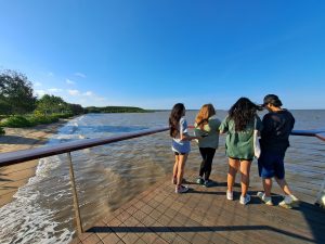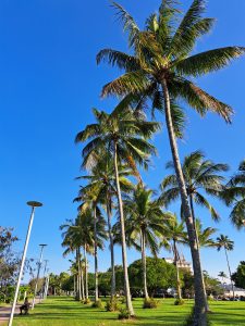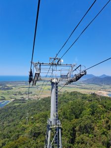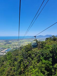 Daarna was het tijd om te gaan, dit keer met de Skyrail terug! De gondellijn had een paar stops tussendoor waar we even konden rondkijken. Eenmaal terug beneden hadden we nog een paar laatste uurtjes, dus we reden weer terug naar Cairns (ik reed dit keer!), waar we naar een kunstmuseum gingen. Lekker even vluchten van de zon haha (ik was rood aan het worden, want was natuurlijk zo slim geweest om me niet in te smeren). Na het kunstmuseum reden we naar de Botanical Gardens. Ik heb me uitgeleefd met foto’s maken van planten, want er waren zoveel mooie, coole en onbekende planten! En natuurlijk een hoop die ik herkende van Leurs. Ook wat gekke spinnen gezien, soort krabachtig lichaam. Blijkbaar was dat de eerste spin die in Australië benoemd werd.