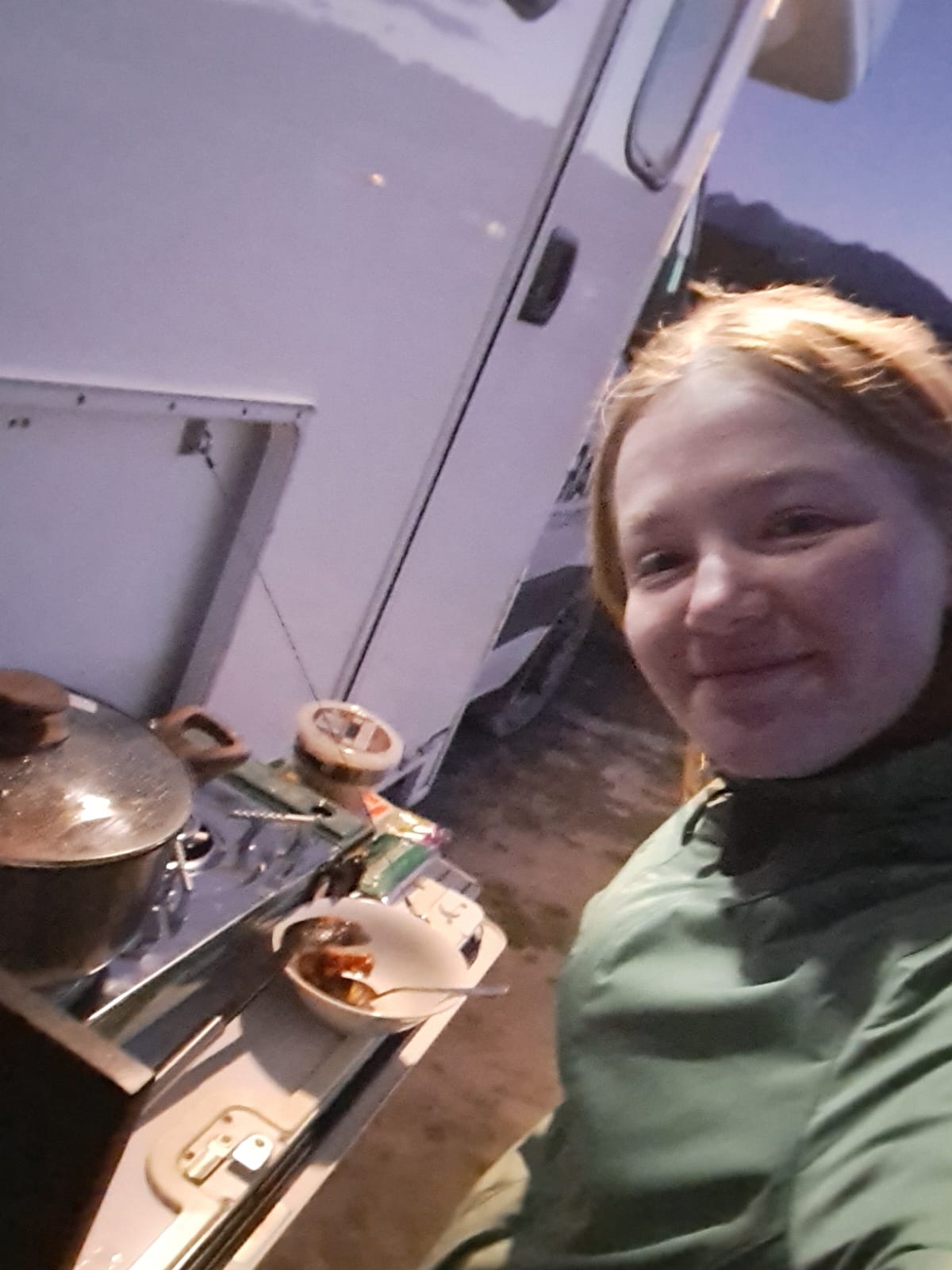 Koken doen we buiten de camper, want er is iets met het gas.