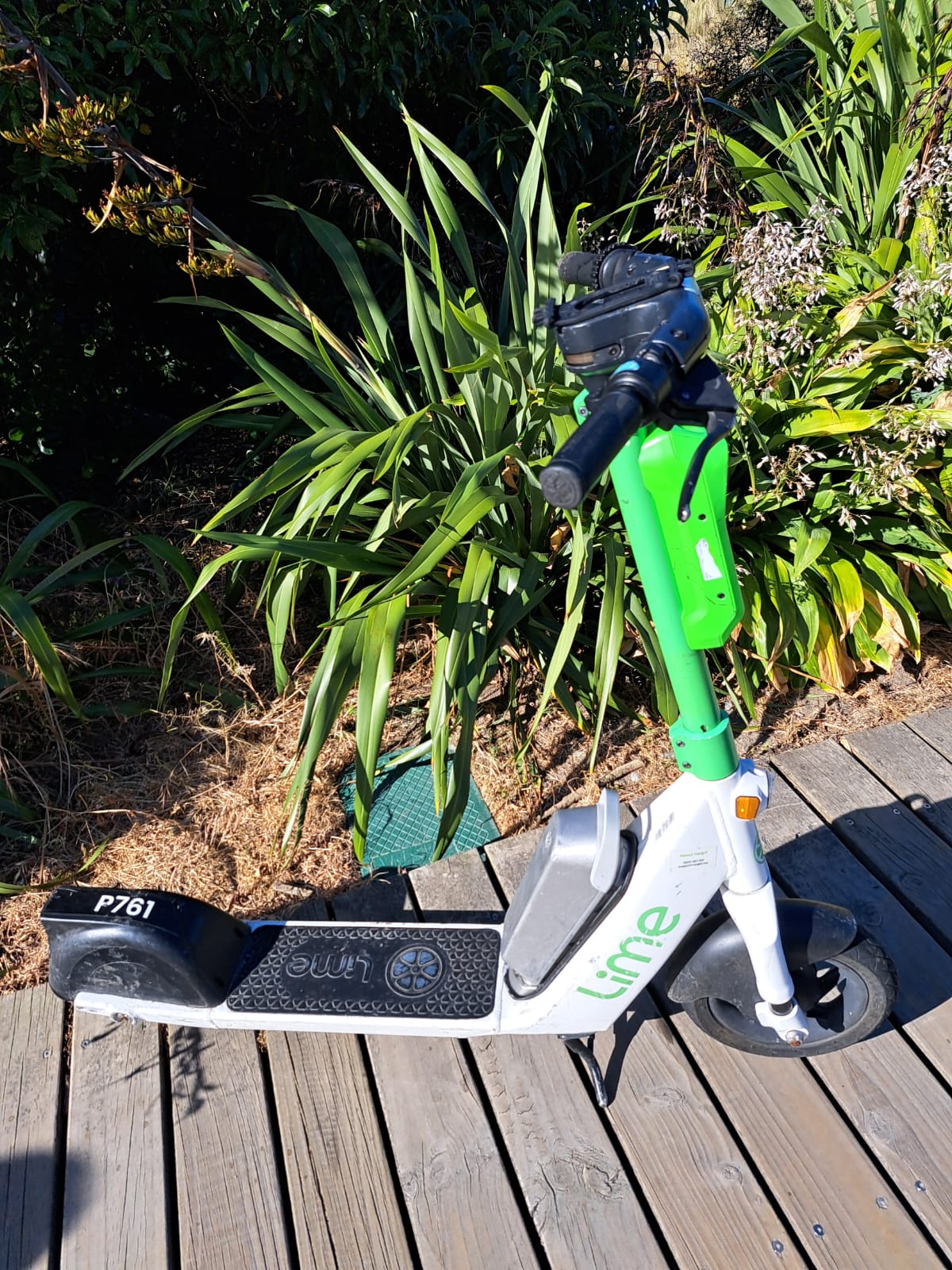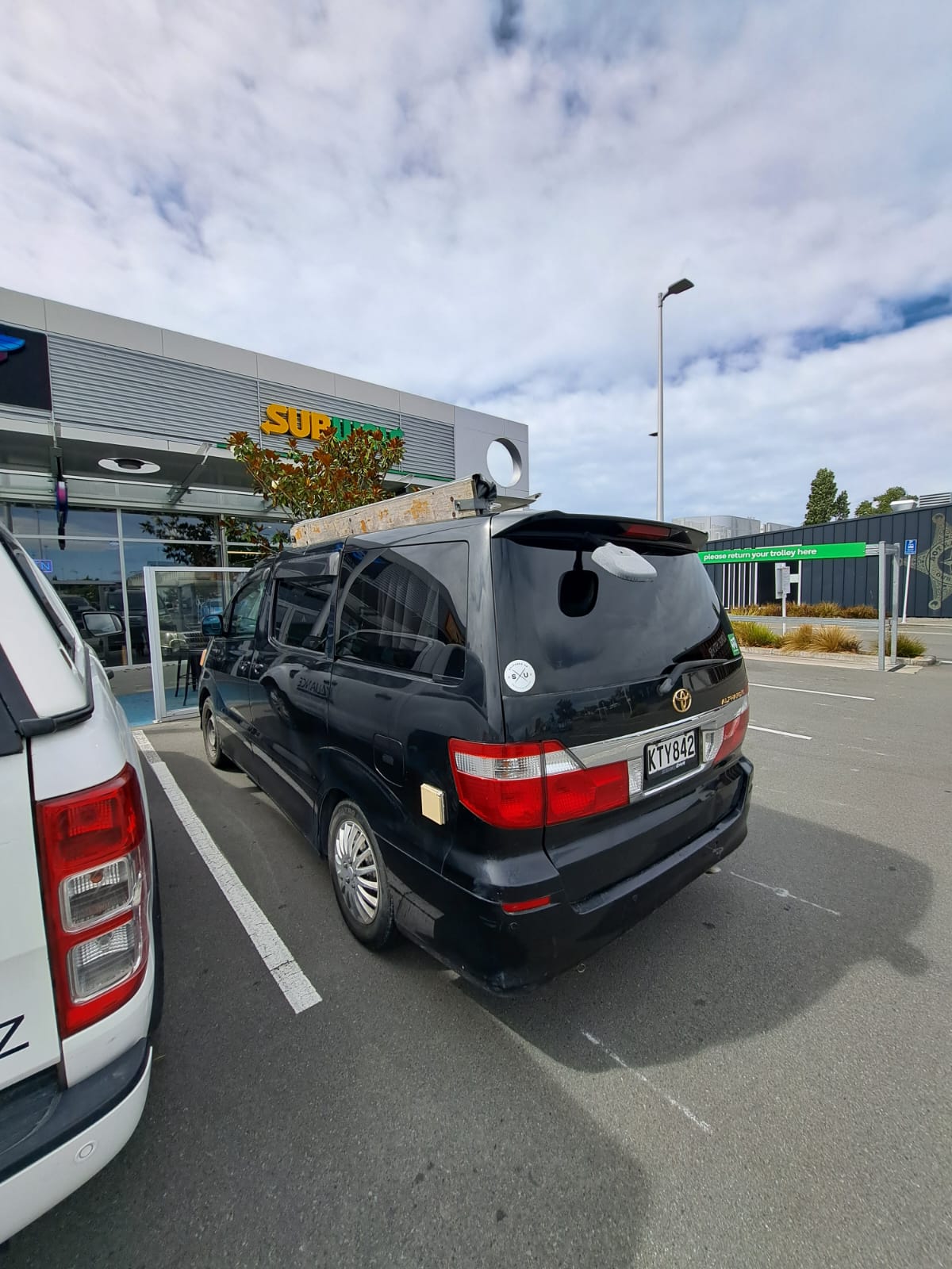 De dikke camper ingeleverd in Christchurch. Nog gestept op elektrische stepjes. Twee van de meiden gaan naar huis.