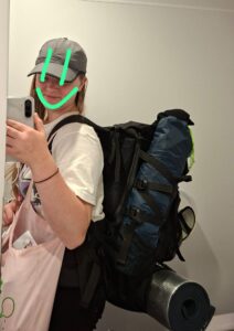 Laatste inkoopjes gedaan voor huttentocht over de Taranaki-berg over twee dagen. Gasbrander gekocht met pannensetje, zuiveringstabletten (de hutten zijn basic, hebben alleen regenwater, geen drinkwater). Het wordt niet zo mooi weer, dus toch nog een poncho en regenbroek gehaald, kapot duur. De slaapzak/tent/matje had ik al in Auckland op de kop getikt, bij de Kmart en via Facebook, dat was dan weer kapot goedkoop. Nog even de rugzak afstellen, eten, en morgen naar New Plymouth.