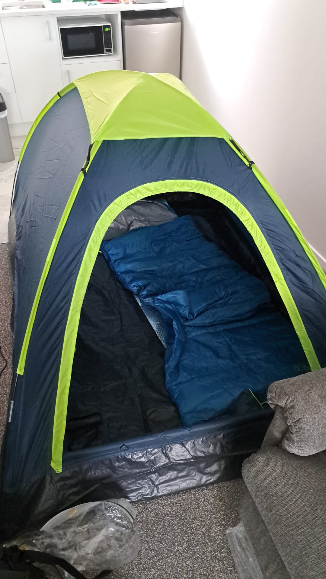 Laatste inkoopjes gedaan voor huttentocht over de Taranaki-berg over twee dagen. Gasbrander gekocht met pannensetje, zuiveringstabletten (de hutten zijn basic, hebben alleen regenwater, geen drinkwater). Het wordt niet zo mooi weer, dus toch nog een poncho en regenbroek gehaald, kapot duur. De slaapzak/tent/matje had ik al in Auckland op de kop getikt, bij de Kmart en via Facebook, dat was dan weer kapot goedkoop. Nog even de rugzak afstellen, eten, en morgen naar New Plymouth.