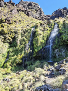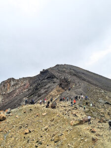 Vanaf de parkeerplaats eerst een lange helling naar Soda Springs, dan omhoog de zuid-krater op. Anders dan de vorige berg waren er meer bergmensen hier (zie eerste filmpje hieronder).