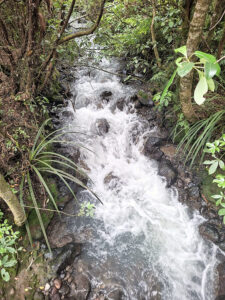 Met een busje een uur rijden naar de parkeerplaats waar de tocht start.