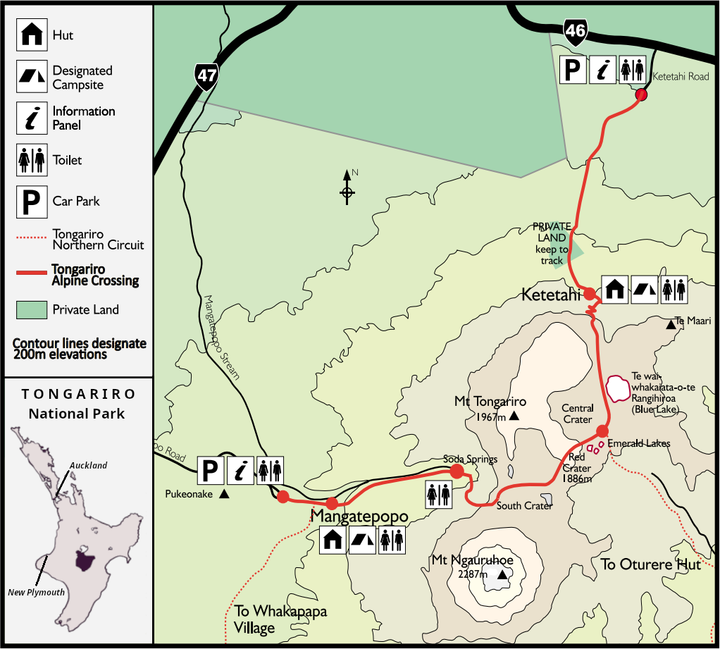 Een dagtocht gemaakt door vulkaanlandschap, in het Tongariro National Park. De vulkaan is nog regelmatig actief…