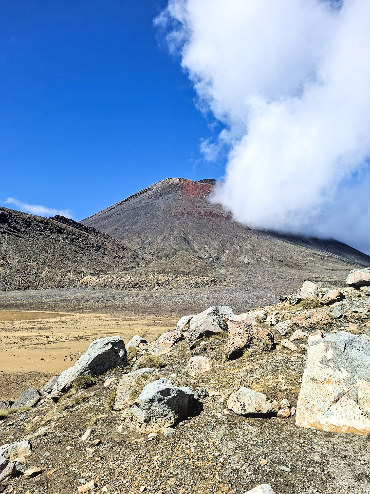 Een dagtocht gemaakt door vulkaanlandschap, in het Tongariro National Park. De vulkaan is nog regelmatig actief…