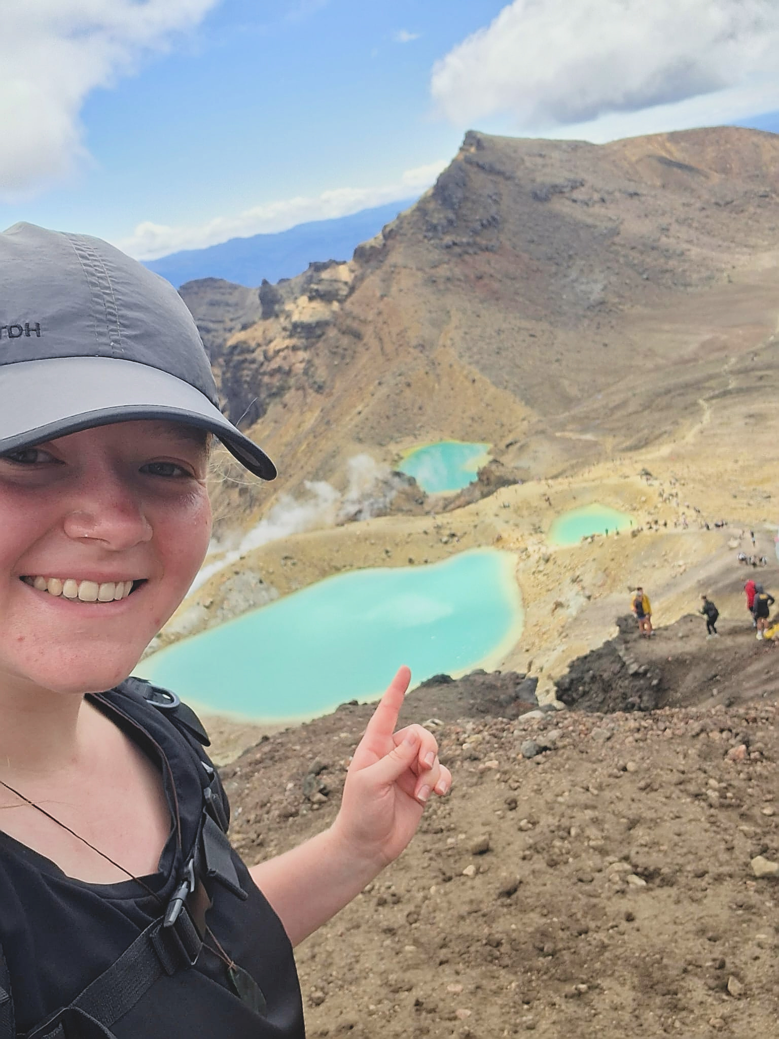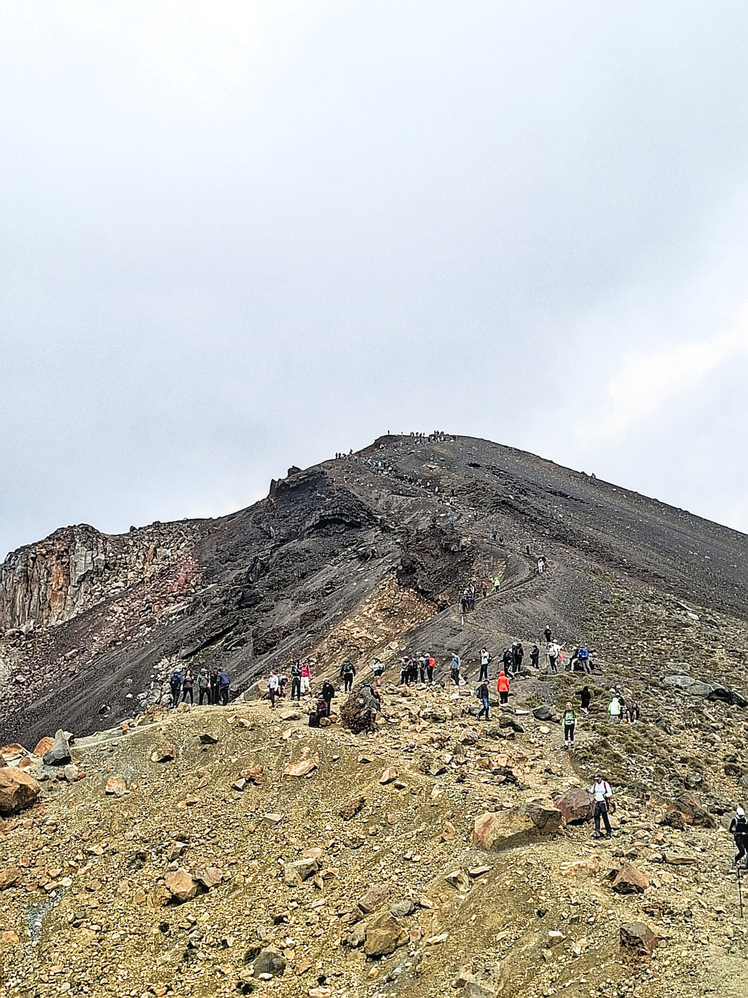 Vanaf de parkeerplaats eerst een lange helling naar Soda Springs, dan omhoog de zuid-krater op. Anders dan de vorige berg waren er meer bergmensen hier (zie eerste filmpje hieronder).