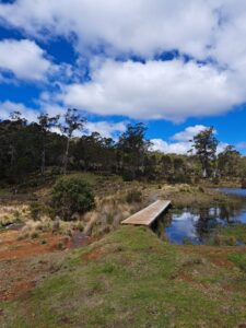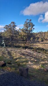 Doorgereden naar Cradle Mountain, waar we leuk hebben gewandeld, gekeken, gefotografeerd en wombats gespot in het grassige landschap! Aan het eind van de wandeling een beetje regen opgepakt, maar gelukkig kwam de shuttlebus ons al snel redden. Na het koken van hoog culinaire gerechten, hielden we een filmavondje heel gezellig/cozy met zijn allen in een tweepersoonsbed want het was koud. Zo zijn we ook in slaap gevallen haha.
