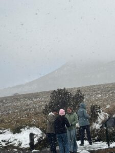 Tijdens het rijden veranderde het weer tot een werkelijk winter wonderland, want het sneeeuwdeeeeeee!!!!! Ik was natuurlijk helemaal happy, want sneeuw!! Even gestopt en samen een sneeuwpop gemaakt en wat sneeuwballen gegooid yeey.