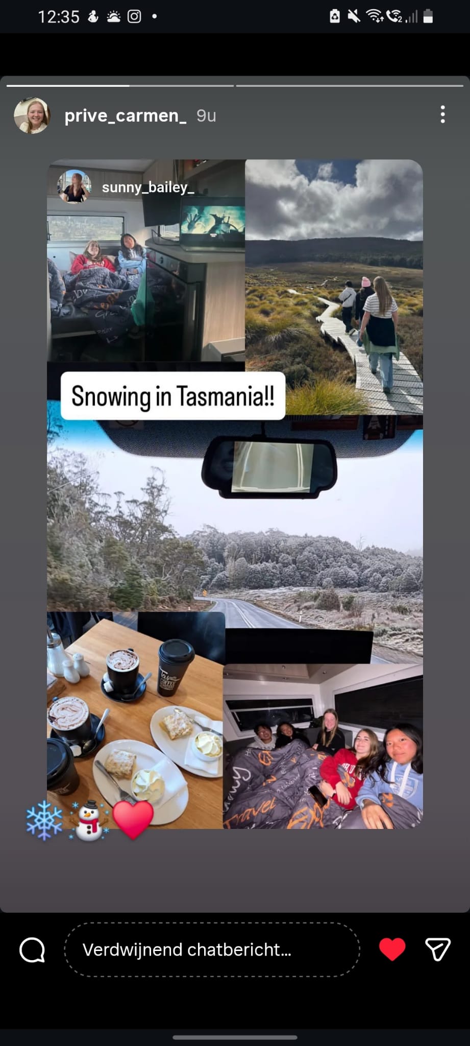 Doorgereden naar Cradle Mountain, waar we leuk hebben gewandeld, gekeken, gefotografeerd en wombats gespot in het grassige landschap! Aan het eind van de wandeling een beetje regen opgepakt, maar gelukkig kwam de shuttlebus ons al snel redden. Na het koken van hoog culinaire gerechten, hielden we een filmavondje heel gezellig/cozy met zijn allen in een tweepersoonsbed want het was koud. Zo zijn we ook in slaap gevallen haha.