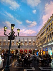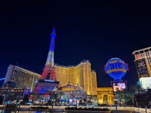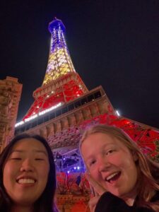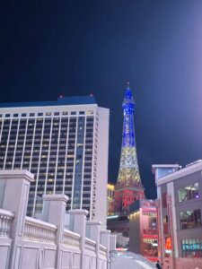 Bult foto’s van The Strip, een lange straat met de bekende casino’s en hotels. Bijv. van Venetian, waar het net is alsof je in Italië bent, of van de Eiffeltoren! En een paar selfies van Cailene en mij.