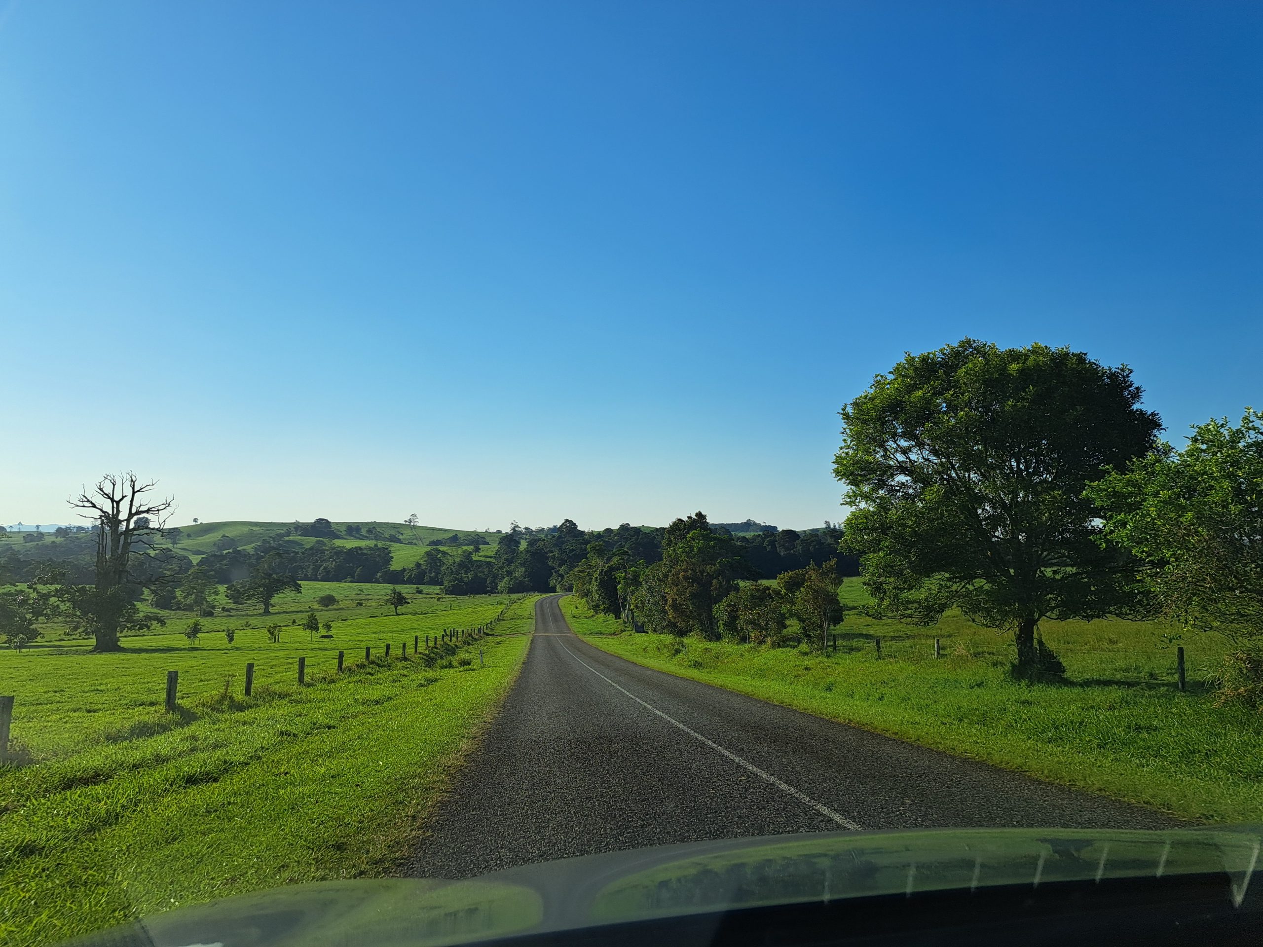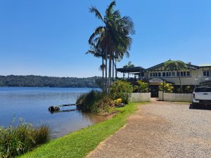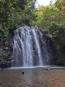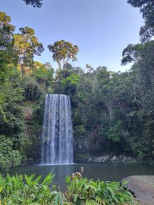 Cynthia and Cailene were the first to wake up, so they went ahead to pick up the car we'd rented for the next few days. Around 10 a.m., we checked out of the hostel and had breakfast at a small restaurant: Japanese fluffy pancakes, delicious! After a quick trip to Woolworths (grocery store) (grapes are incredibly expensive in Cairns, btw, apparently an Australian thing), we drove to our first destination: Lake Barrine. We looked around and took a short walk. We spotted all sorts of plants from the houseplant section: fittonia, palm, dracaena, ferns, etc.! We also saw a bush turkey just walking down the street. Our next destination was Lake Eachom, where we jumped in the water and luckily didn't get bitten by the resident freshwater crocodile, haha. After that, we drove to three waterfalls (Millaa Millaa Falls, Zillie Falls, and another one). One of the three waterfalls wasn't really visible from the fenced-off area, but the other two were beautiful! At one of the waterfalls, we even saw a turtle with baby turtles!! How cute!! On the way back, we stopped for a cow, but the cow wasn't interested in us and didn't look very happy, so we got back in the car, haha. The car rides themselves were fun, with music playing, beautiful views of the Tablelands, and of course, we messed around with the music to irritate each other with really long songs (10 minutes long) of different musical genres. In the evening, we checked into the Jackaroo Motel and had Uzbekistan food (pilaf) somewhere. Energy was a bit low, so dinner was appreciated. After we all had fresh showers and Cynthia and I had gone mosquito hunting in the room, we played a few rounds of photo roulette (guess whose picture this is), which was fun. We also watched My Little Pony while waiting for each other to shower, and ended the evening with the film Hunt for the Wilderpeople, a New Zealand film about a rebellious boy who travels through the wilderness with an old man, all the while trying to avoid the police because they think the man has kidnapped the boy.